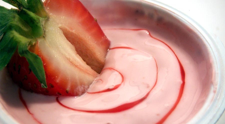 - صبى مشروب الزبادى بالفراولة، وزينيه بالفراولة الحمراء وقدميه.