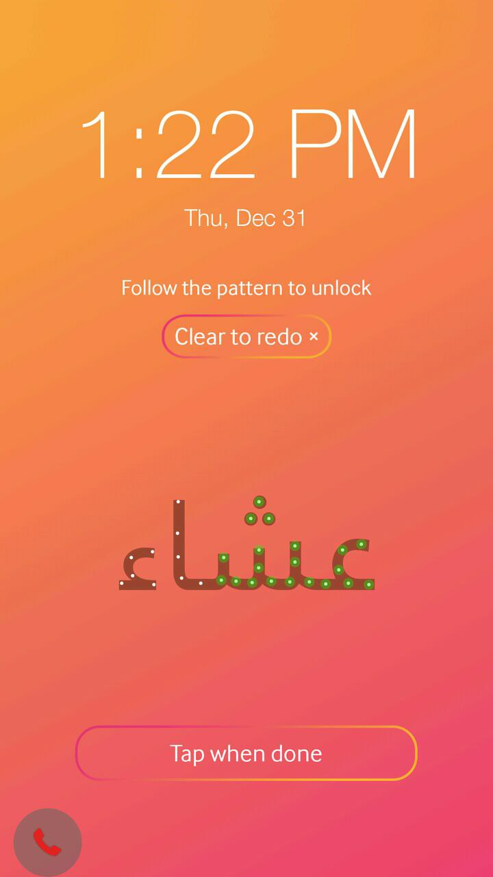 وقالت الشركة إن التطبيق الجديد يعمل على شاشة الإقفال على هواتف الشركة، إذ يحتاج المستخدم إلى توصيل النقاط على شاشة اللمس لتكوين كلمة باللغة العربية من أجل فك قفل الشاشة.