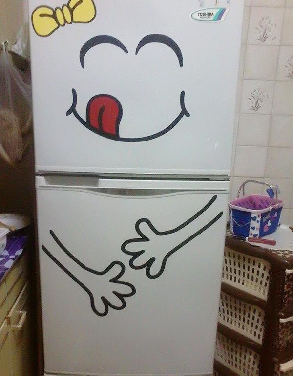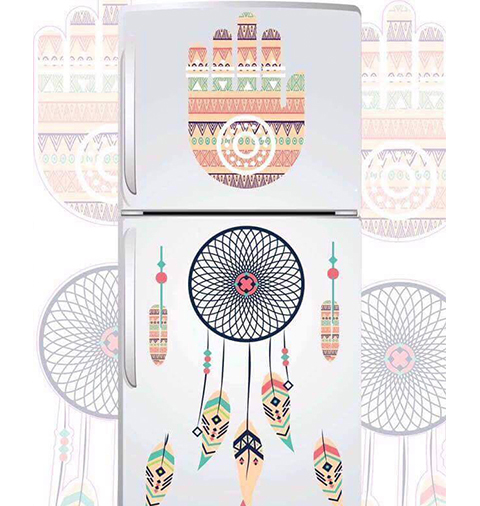 أما عن أحدث تصميمات الاستيكر فهي استيكر الثلاجة الذي يمنح ثلاجتك شكلًا جديدًا غير تقليدي ويرسم عليها لمسات أنيقة مبهجة.